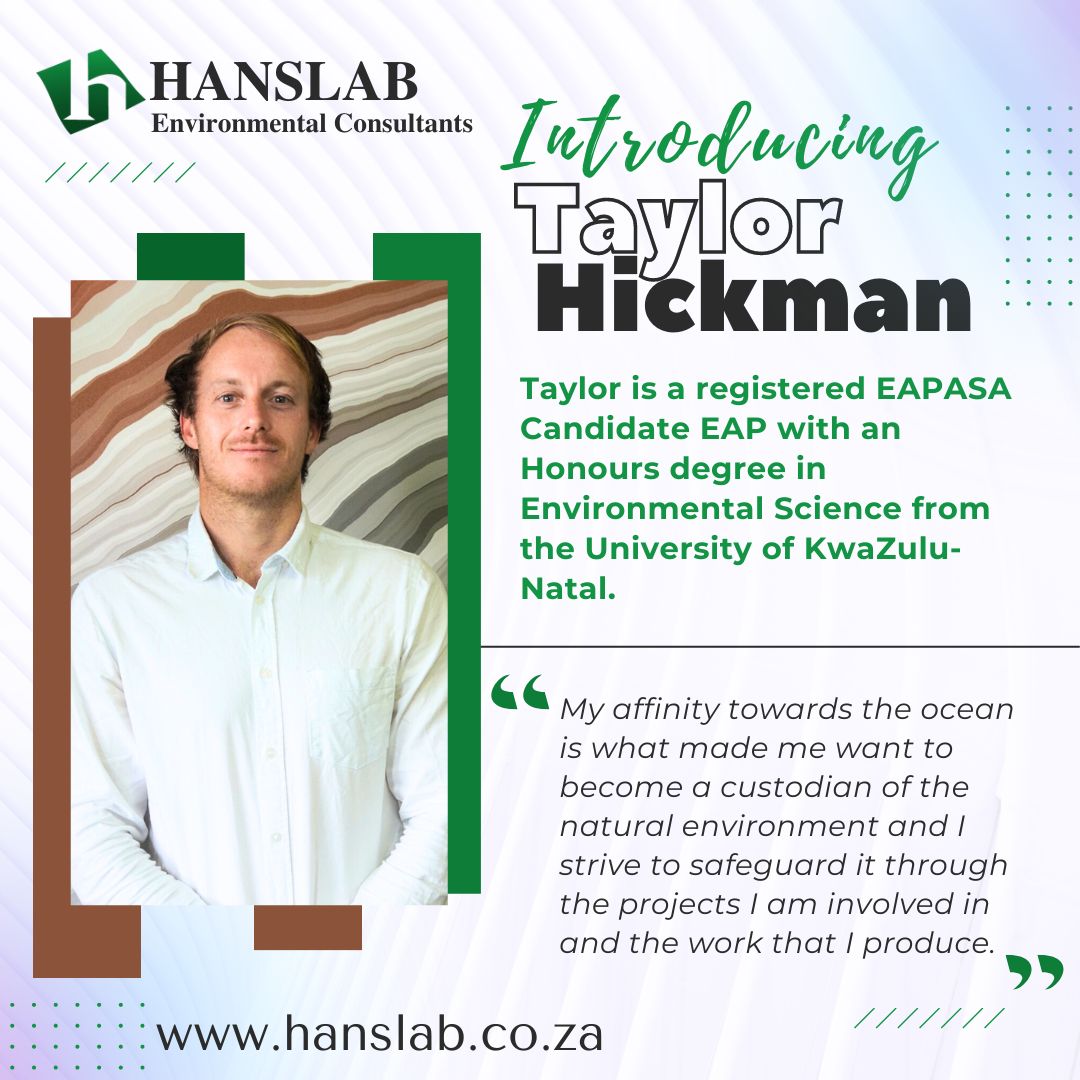 A warm welcome to Taylor Hickman from the whole team at Hanslab Environmental Consultants!